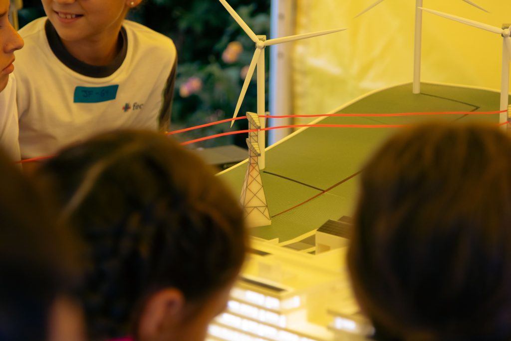 Durante la jornada matinal, dedicada a los centros educativos, 250 estudiantes aprendieron con talleres interactivos sobre energía renovable, movilidad sostenible y eficiencia energética. Entre las actividades que llevó AGENEX, destacan la presentación de una maqueta 3D de una comunidad energética, perteneciente a la OTC de Extremadura; un Pasapalabra energético; o juegos como ‘Haz tu barrio sostenible’, ‘De renovable a renovable’ o ‘Monta tu propio coche solar’.